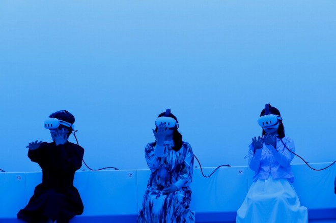 Voice actors and artists experience the Expo pavilion Live Earth Journey (Inochi Meguru Bōken).